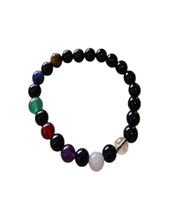 Esta pulseira é maioritariamente feita com Ónix, para lhe proporcionar uma proteção contra todo o mal e selecionamos uma gama de pedras, para que cada uma simbolize um Arcanjo.